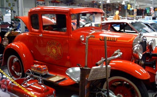 Today we explored Lake Norman and some of the surrounding towns. We also visited the "Memory Lane Museum", which houses a private collection of many different kinds of vehicles - cars, bicycles, motorcycles, roadsters, and racing memorabilia. The first photo below is for my cousins Ed and Wes, because they are both retired firefighters. This car belonged to the "Chief" of a firefighting unit somewhere, and has been meticulously cared for:
